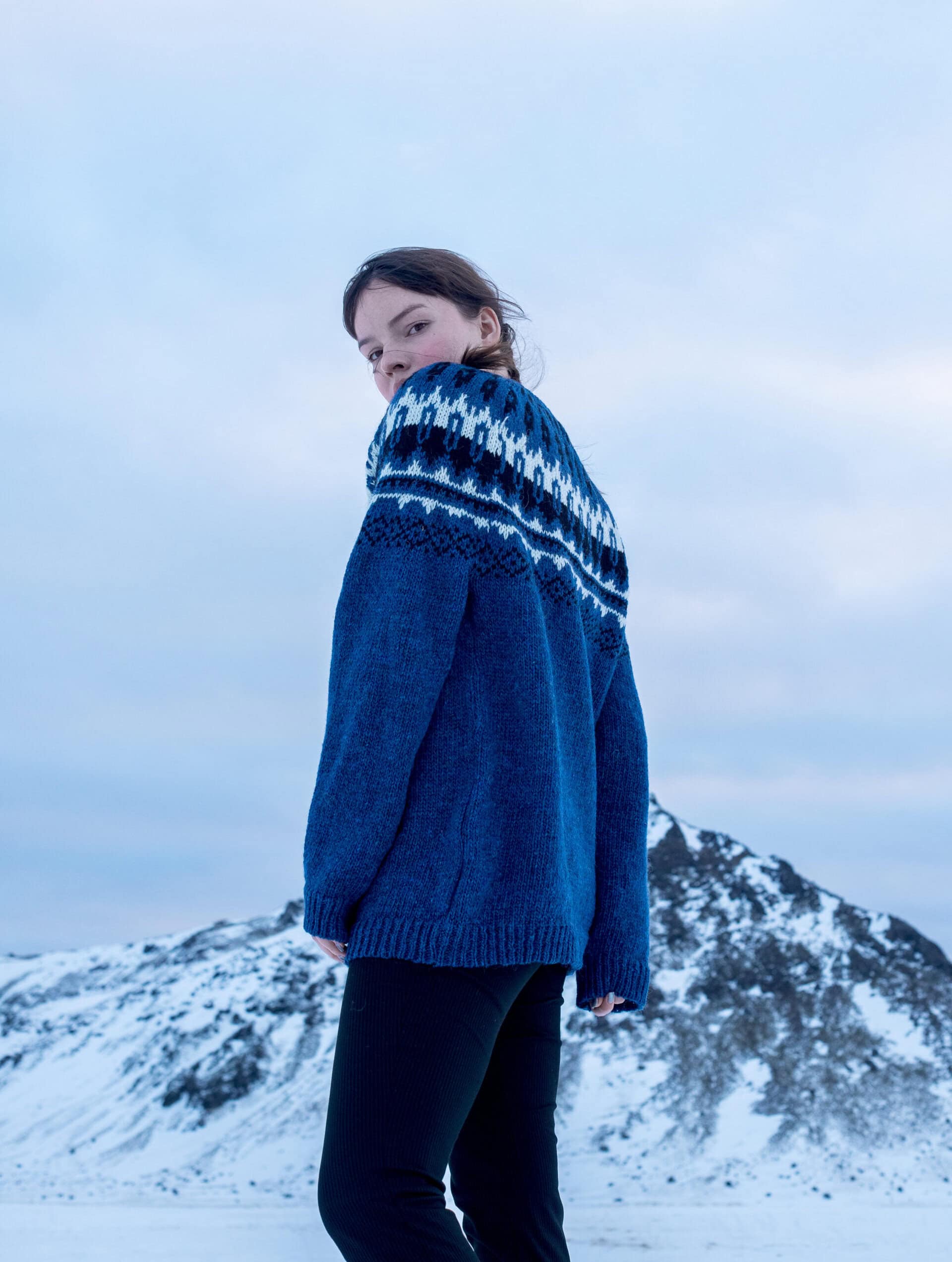 The “Mýrdal” sweater draws its inspiration from the dramatic landscapes of the Mýrdal region in South Iceland — moss-covered lava fields, black sands, and the icy tones of Mýrdalsjökull glacier.